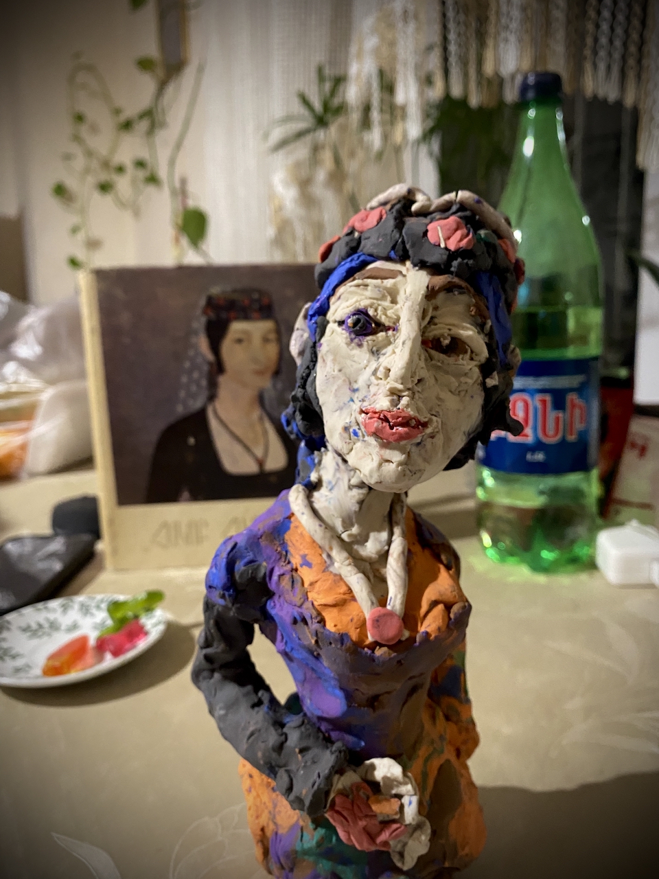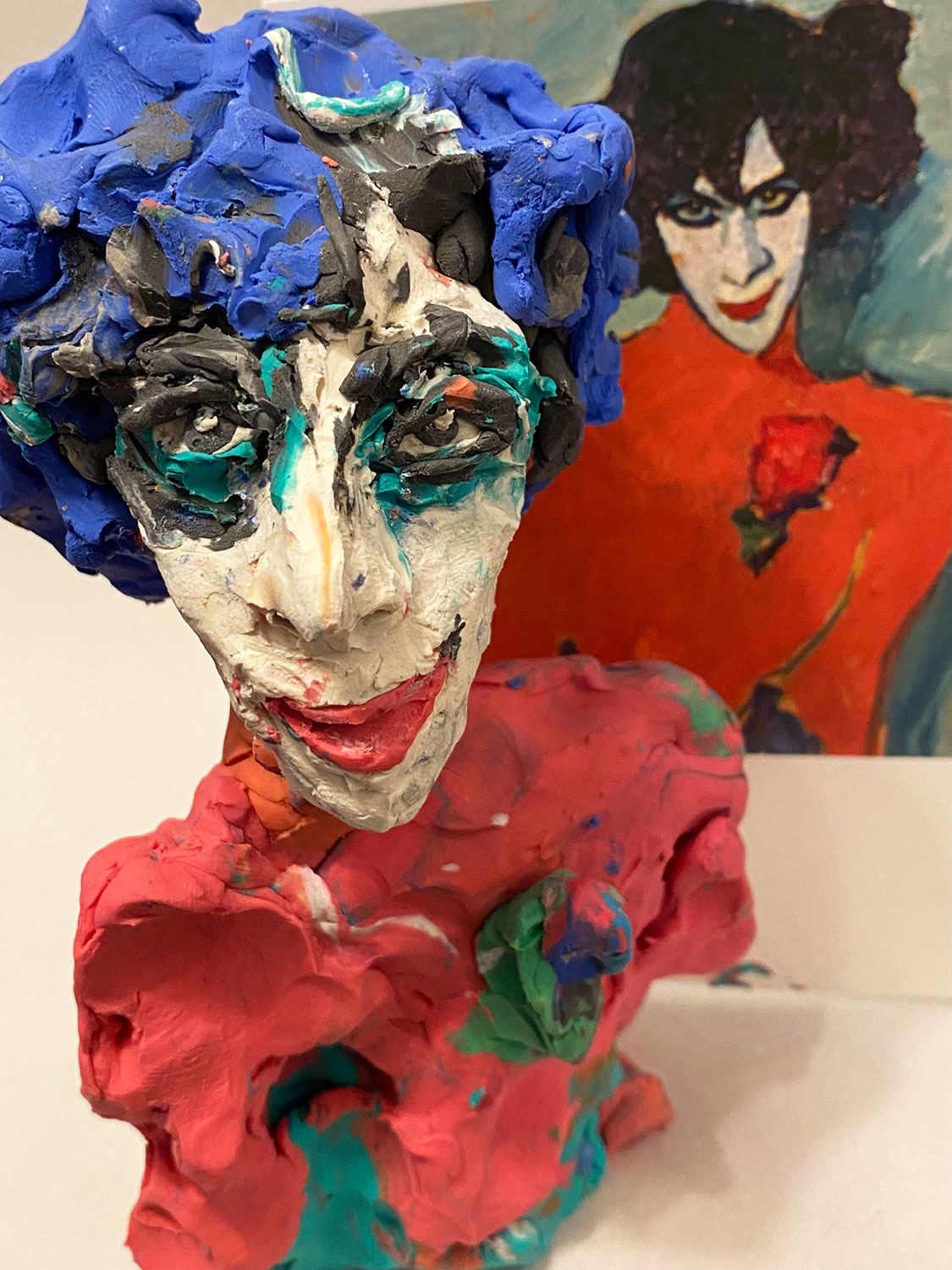 Männer als Frauen gibt es auf Gemälden selten. Hier der bestechende Alexander, Postkarte (Bildnis des Tänzers Alexander Sacharov, Alexej von Jawlensky, 1909, Lehnbachhaus München), Knete, 2025